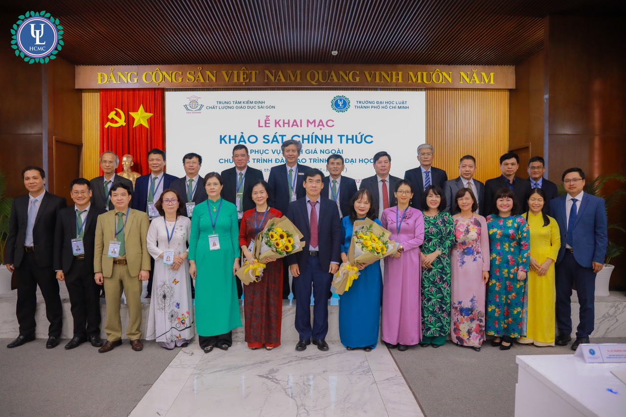 Sáng ngày 21/08/2023, Trung tâm Kiểm định chất lượng giáo dục Sài Gòn đã phối hợp cùng Trường Đại học Luật TP.HCM tổ chức phiên Khai mạc đợt Khảo sát chính thức phục vụ đánh giá ngoài chương trình đào tạo trình độ đại học hệ chính quy bao gồm các ngành: Luật CLC; Quản trị kinh doanh CLC; Quản trị - Luật CLC; Ngôn ngữ Anh - Chuyên ngành Anh văn pháp lý; Luật thương mại quốc tế; Quản trị kinh doanh đại trà; Quản trị - Luật đại trà.