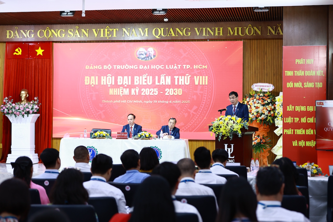 Đại hội đại biểu Đảng bộ Trường Đại học Luật TP.HCM lần thứ VIII, nhiệm kỳ 2025-2030 diễn ra ngày 19/6/2025, thông qua nhiều giải pháp hướng tới mục tiêu xây dựng Trường trở thành cơ sở trọng điểm đào tạo pháp luật theo Nghị quyết 66 của Trung ương.