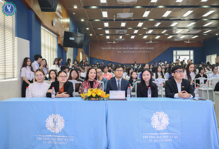Về phía Trường Đại học Luật TP. HCM, tham dự chương trình có sự góp mặt của PGS.TS. Trần Việt Dũng - Phó Hiệu trưởng Nhà trường; ThS. Vũ Đình Lê - Phó Trưởng phòng phụ trách Phòng Tư vấn Tuyển sinh; ThS. Đoàn Việt Hùng - Phó Trưởng phòng Phòng Tư vấn Tuyển sinh; Ông Nguyễn Thành An - Trưởng Phòng Truyền thông & Quan hệ doanh nghiệp; ThS. Nguyễn Thành Bá Đại - Phó Trưởng phòng Truyền thông & Quan hệ doanh nghiệp; ThS. Đặng Kiều Vi Vi - Phó Giám đốc Thư viện; TS. GVC. Nguyễn Thị Ánh Hồng - Trưởng Bộ môn Luật Hình sự; cùng ThS. Nguyễn Hữu Túc - Giảng viên Khoa Khoa học cơ bản. Và đặc biệt, chương trình hân hoan chào đón sự hiện diện của hơn 500 học sinh đến từ các trường THPT trên địa bàn TP. HCM.